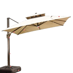 - Rotación de 360°: Base con pedal giratorio para mover la sombrilla fácilmente con solo pisar, ideal para ajustar la sombra según la posición del sol.